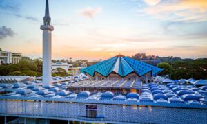 1965年に建設されたイスラム教礼拝施設(モスク)。青と白を基調としたモダン建築が特徴で、1957年のイギリスからの平和的独立を記念して「Masjid Negara」と名付けられました。見学時間内であれば内部の一部が公開されており、博物館や美術館との動線も良く、都心部にありながら落ち着いた環境です。ドレスコードがございますので、訪問時の服装には留意ください。