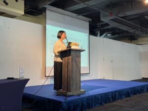 講演では、弊センタースタッフが「海外で働く女性」として、自身の海外経験、現地で働く中で感じたメリット・デメリット、そして高校生の皆さまにお伝えしたいキャリア観について、約1時間お話させていただきました。