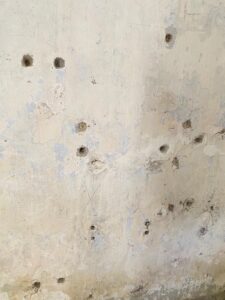 また占領期には拘束や尋問が行われたとされ、壁面に残る弾痕や処刑装置の台座など、戦時の痕跡も現地に残されています。